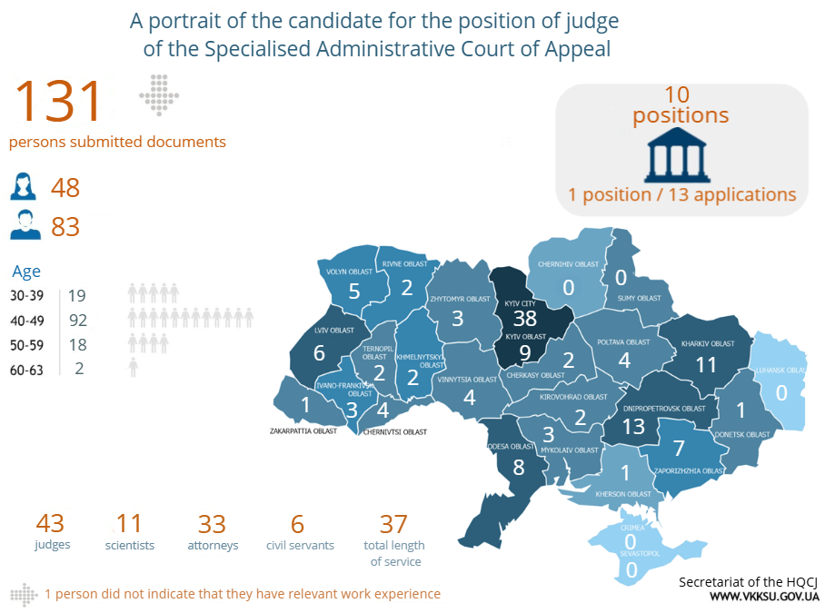 Most of the candidates for the SCAC are lawyers – 95 people. Also participating in the competition are 36 judges, 24 academics and 22 civil servants.